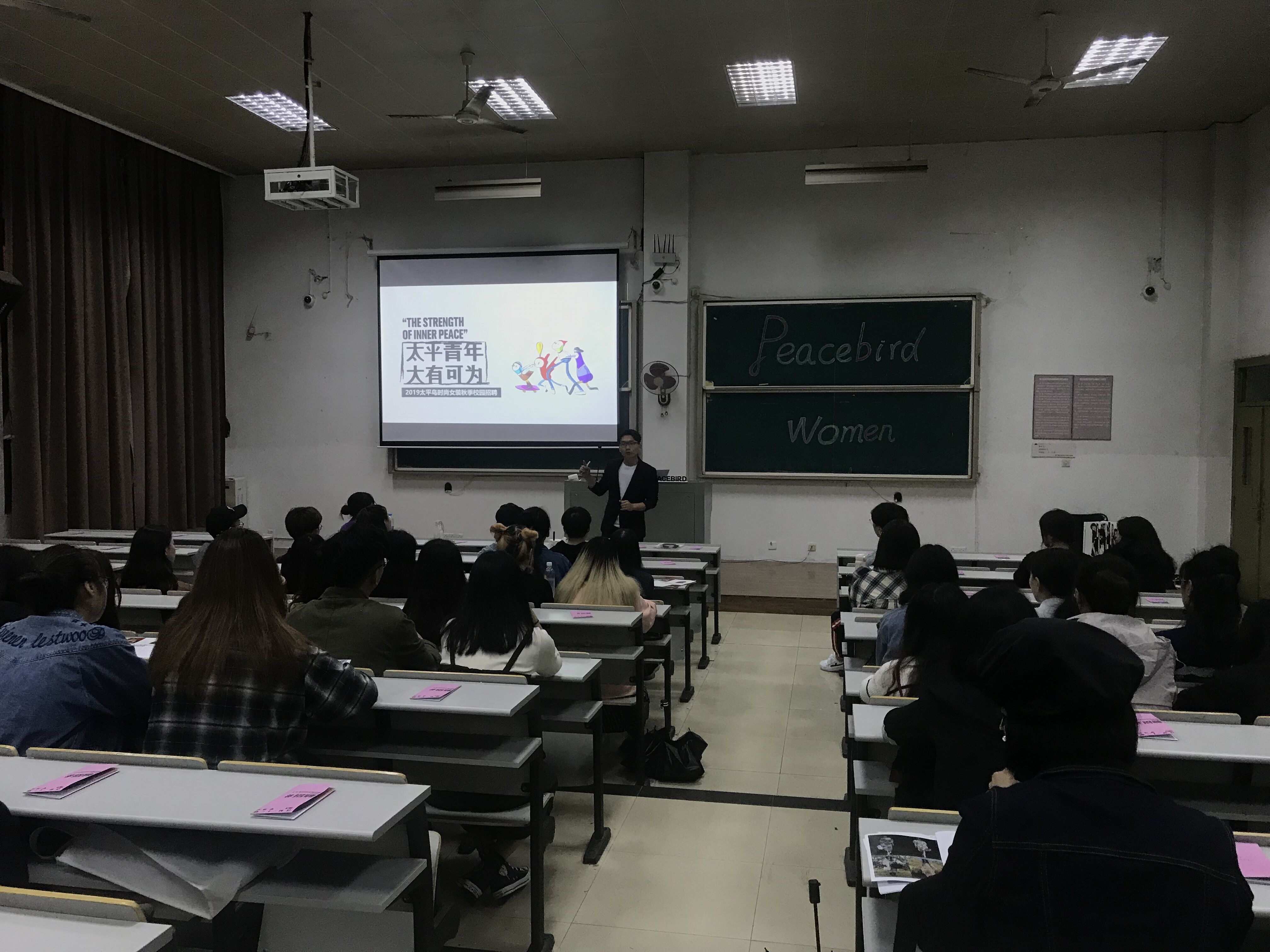 企业人员介绍了江南布衣的成长故事,以及品牌涵盖的商品范围。并向同学们展示了不少人才案例。