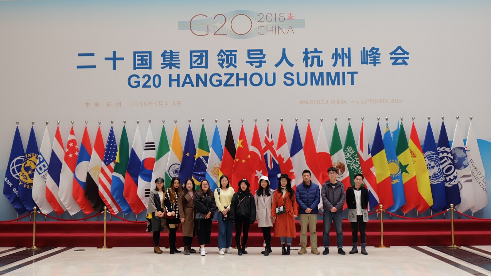 /服装学院六大学生党支部支委相约来到G20峰会主场馆参观,让大家对去年在杭举行的G20峰会有了更加深刻的了解,大国风范在这个会场可以说体现的淋漓尽致,简直是大开眼界,印象深刻。一到达会场,我们就被它的庄严肃穆所吸引。走入场馆内,又发现它的辉煌大气内里包容着精致的内涵,不管是祥云的灯罩还是精致的木雕,都包含着浓浓的中国风,体现了我们这个民族大气雍容。